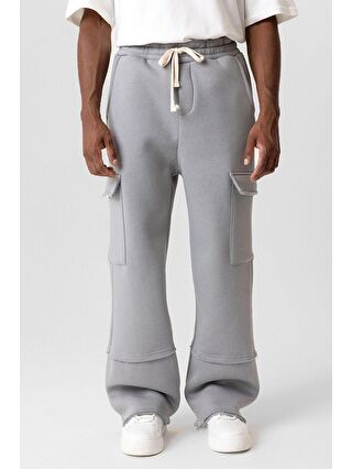 Basıc Kargo Cepli Baggy Eşofman Alt Buz Gri