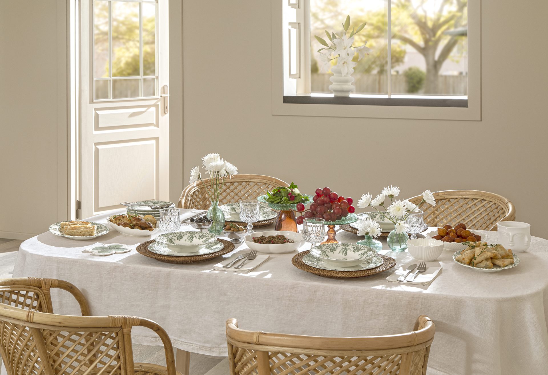 - Duvar görüntüsünü dekoratif kılacak, duvarı tamamen kapatacak suya dayanıklı rattan paneller.