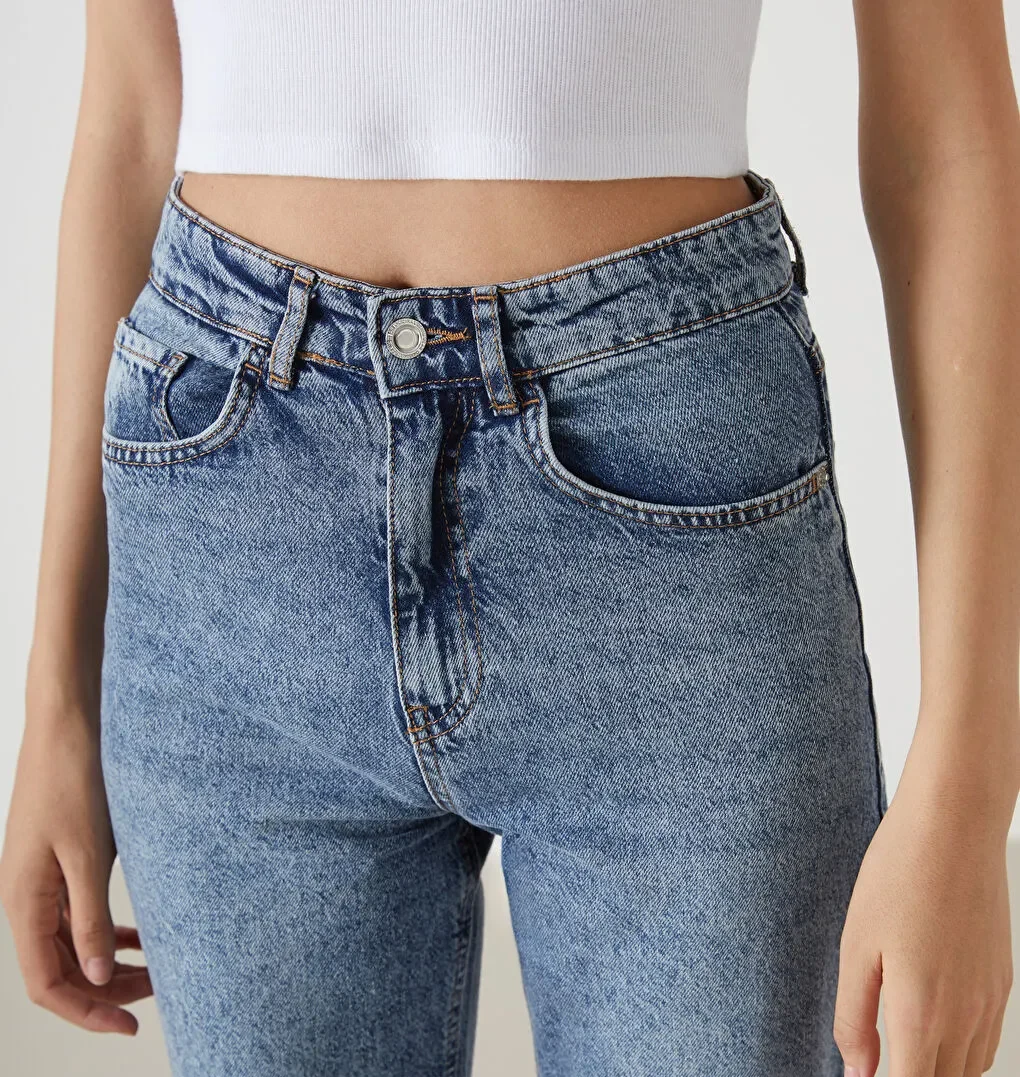 - Slim veya mom fit kadın jean seçenekleri arasından tercih yapabilirsiniz. Kesime dikkat ederek pantolonun üzerinizde nasıl duracağını tahmin edebilirsiniz.