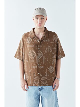 Desenli Oversize Kısa Kol Gömlek Siyah