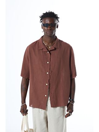 - Dikişsiz Kısa Kol Cepsiz Oversize Keten Gömlek Saks