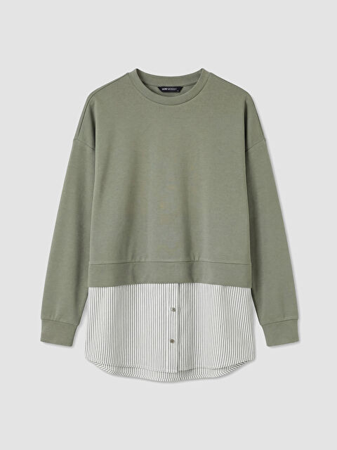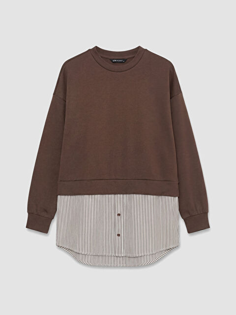 Bisiklet Yaka Gömlek Detaylı Kadın Sweatshirt Tunik