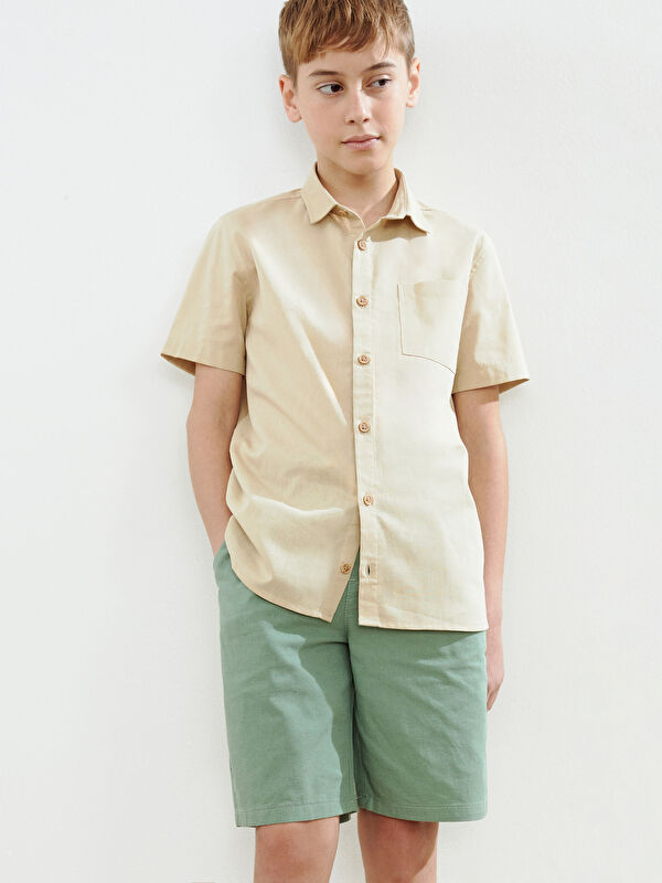 Beli Lastikli Keten Karışımlı Erkek Çocuk Kargo Şort