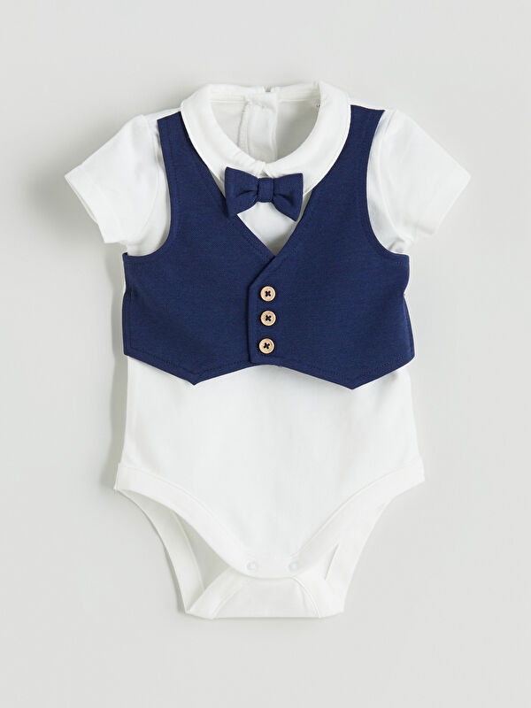 Erkek Bebek Gömlek Şort ve Yelek 3'lü Takım