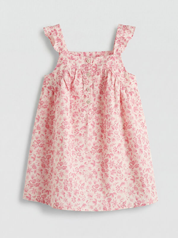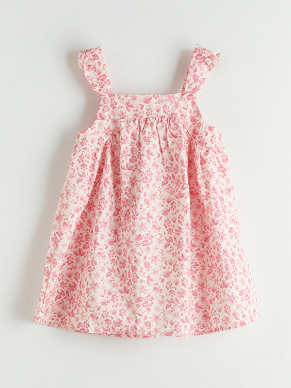 Çiçekli Fırfırlı Kız Çocuk Poplin Elbise