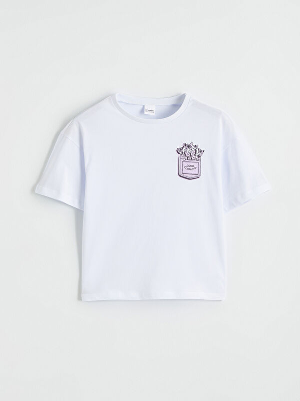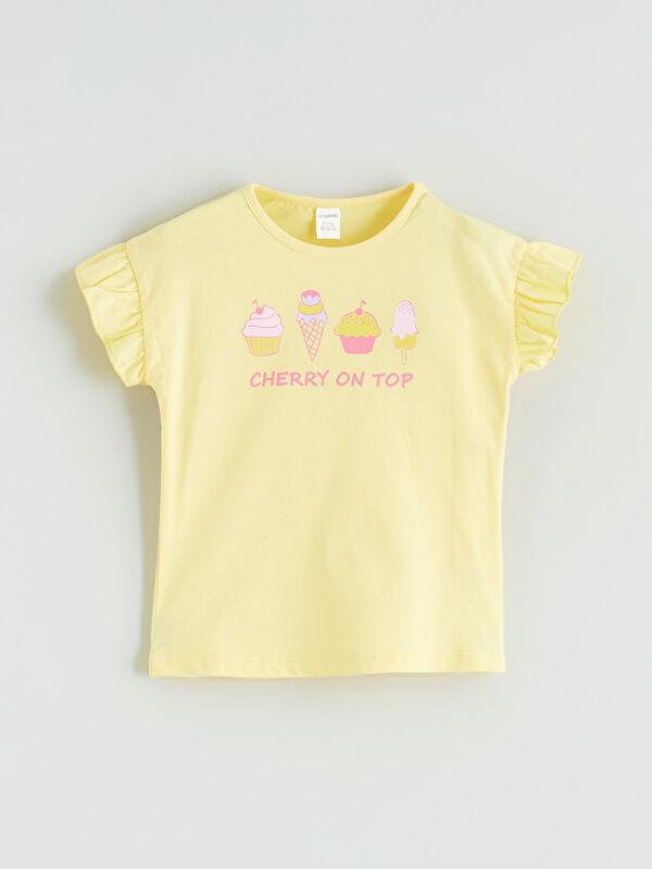 Bisiklet Yaka Baskılı Kız Çocuk Tişört