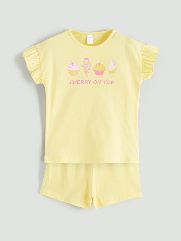 Bisiklet Yaka Kız Çocuk Şortlu Pijama Takımı