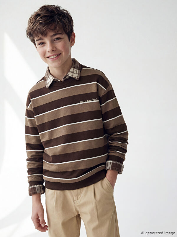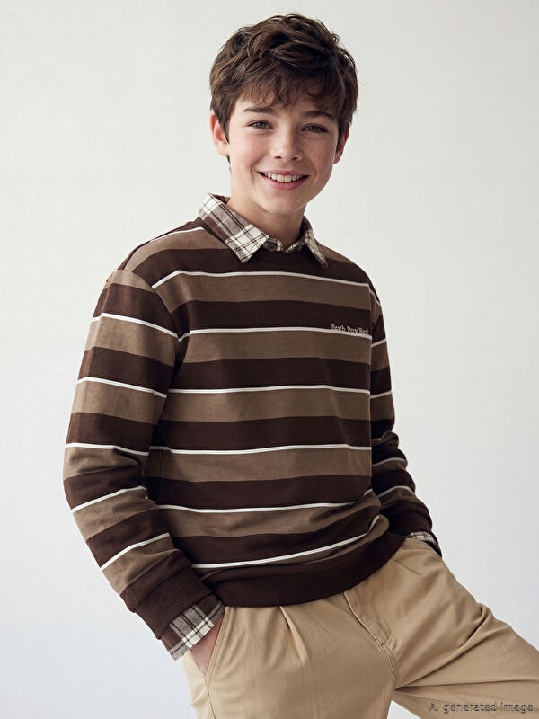 Bisiklet Yaka Çizgili Erkek Çocuk Sweatshirt