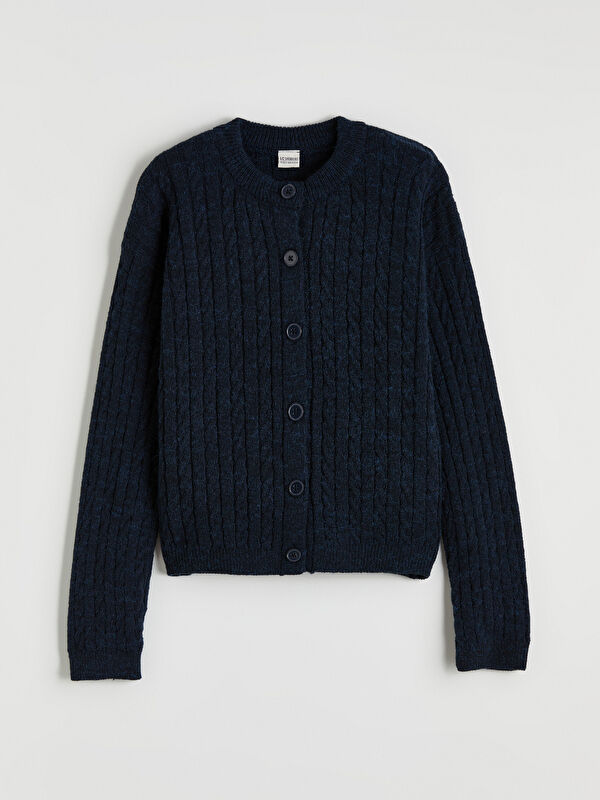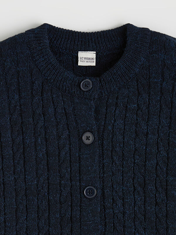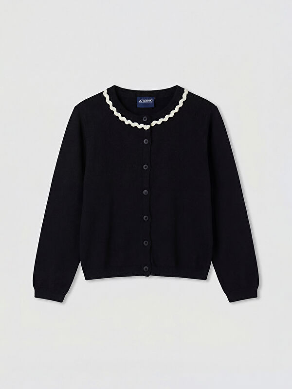 Bisiklet Yaka Ajurlu Kız Çocuk Triko Hırka