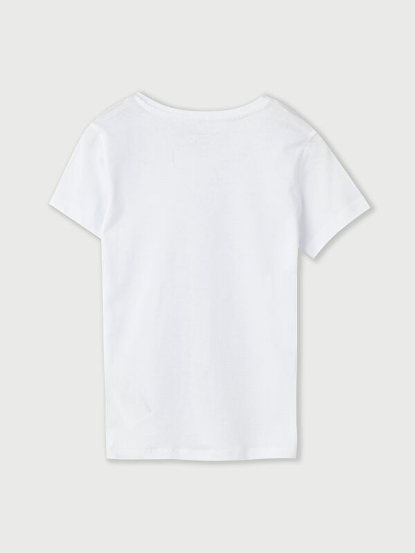 Bisiklet Yaka Baskılı Kız Çocuk Tişört
