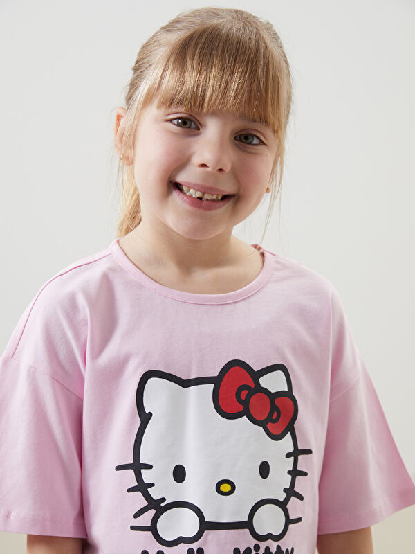 Bisiklet Yaka Hello Kitty Baskılı Kız Çocuk Pijama Takımı