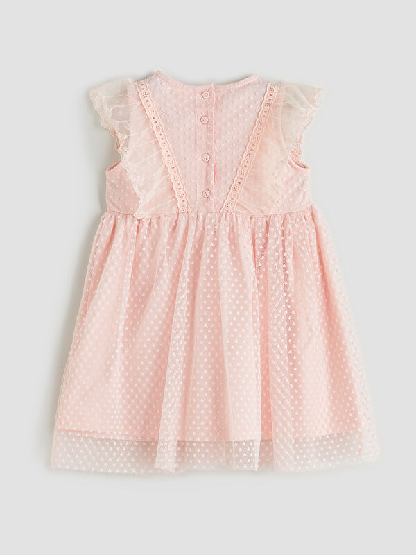 Bisiklet Yaka Nakışlı Kız Çocuk Tütü Elbise