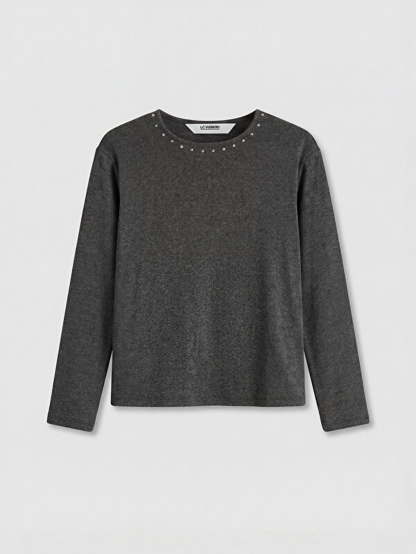 Bisiklet Yaka Taşlı Kız Çocuk Tişört