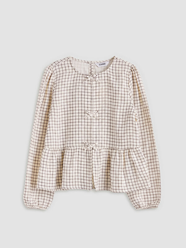 Fiyonk Detaylı Ekose Kız Çocuk Bluz
