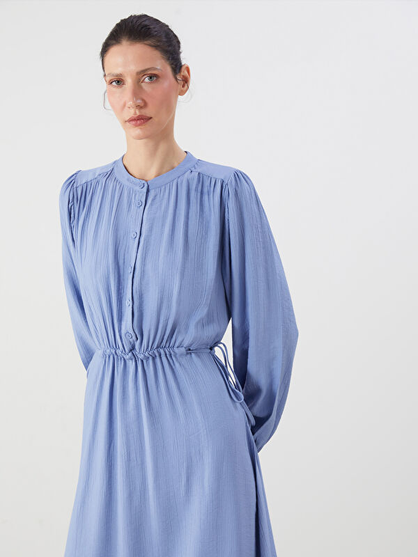 Bisiklet Yaka Dokulu Elbise