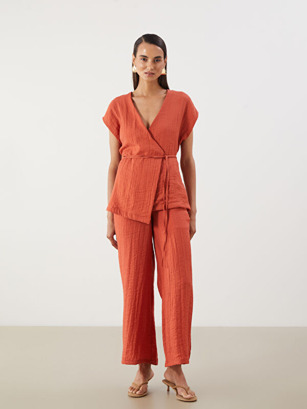 Kruvaze Yaka Dokulu Bluz