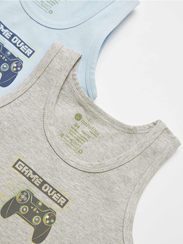 Erkek Çocuk Organik Pamuklu Elastanlı Atlet Play To Win 2 li Paket