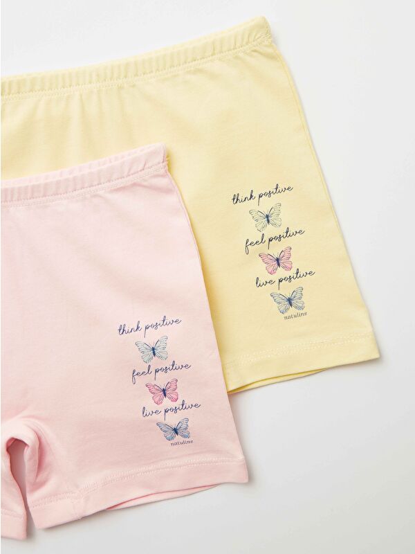Kız Çocuk Organik Pamuklu Elastanlı Boxer Positive Butterfly 2 li Paket