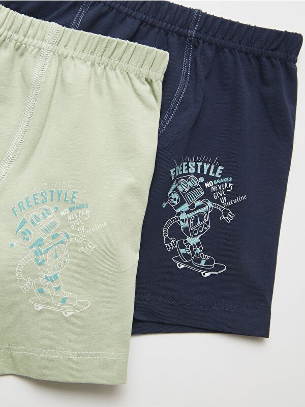 Erkek Çocuk Organik Pamuklu Elastanlı Boxer Freestyle Robot 2 li Paket