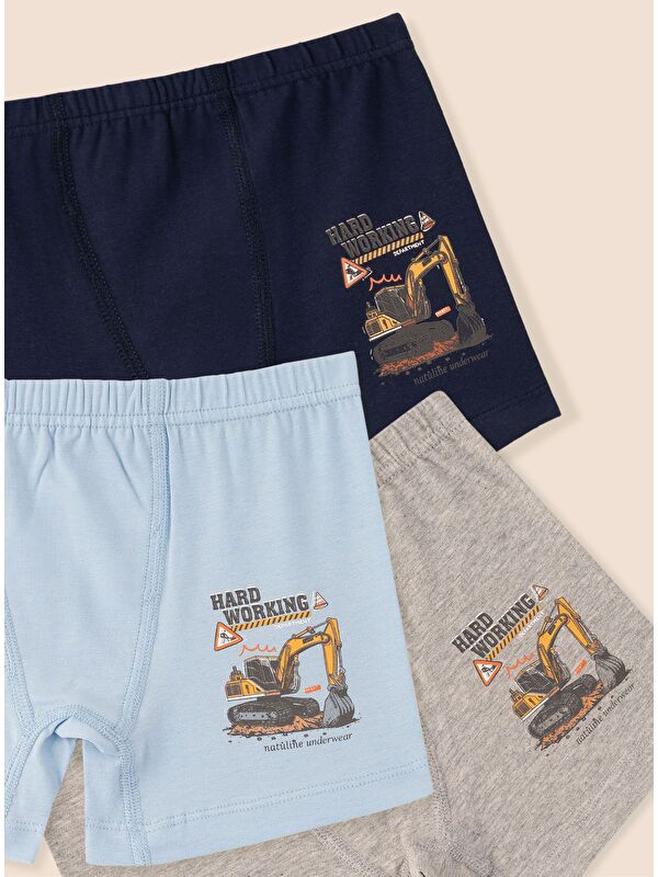 Erkek Çocuk Organik Pamuklu Elastanlı Boxer Hard Working 3 lü Paket