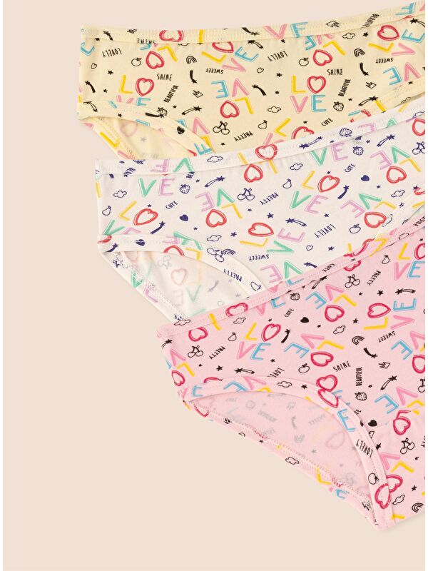 Kız Çocuk Organik Pamuklu Elastanlı Külot Empirme Love 3 lü Paket