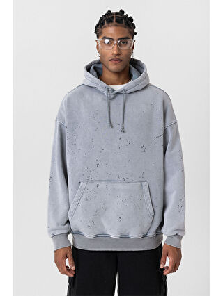 Yıkamalı Kapüşonlu Oversıze Erkek Hoodie Koyu İndigo